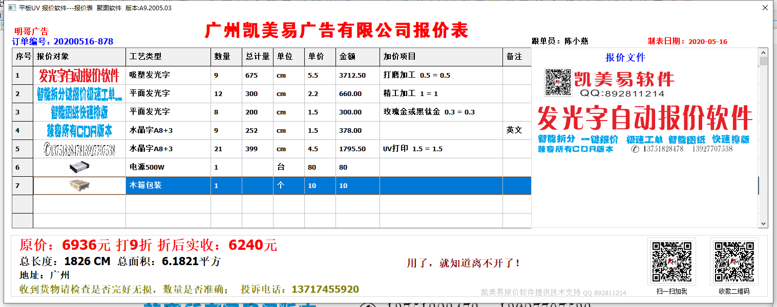 关于发光字的报价,一直是标识广告行业的难题,工艺报价复杂,种类繁多,没有统一标准,报价效率低,报价员易报错,培养报价员难,时间成本高,工人成本高等一系列问题及痛点,于是凯美易发光字自动报价软件诞生了,智能拆分,一键报价,一健工单,工艺处理,智能图纸,智能排版本集于一体多功能智能报价软件,报价只需数秒,解决了以上的难题,提高了生产效率,时间就是金钱!效率就是生命!